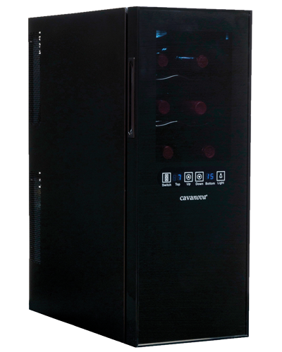 Capacidad 12 botellas · Bi-Térmico (2 compartimentos, temperatura independiente) · Termo-Eléctrico · Display digital (Touch Screen).